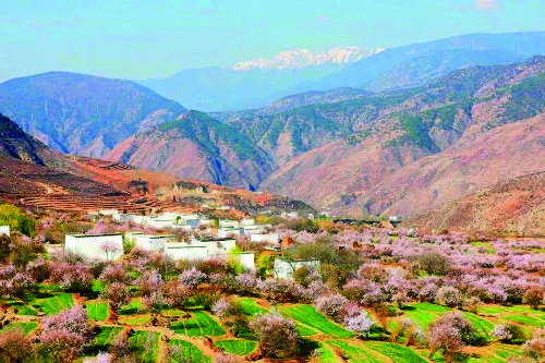 山坡上、田野里、溪流邊、屋舍間、山林處,白色、粉色、紅色,一朵兩朵,一樹(shù)又一樹(shù),鋪滿山坡,伸向河谷,蔚然成花海。