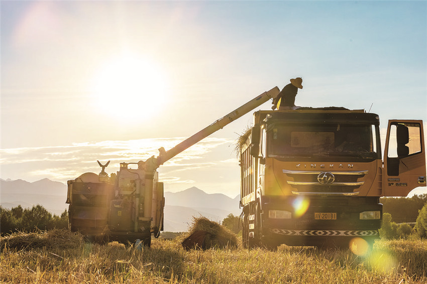 甘孜縣是我州的農(nóng)業(yè)大縣,也是全國青稞商品糧基地之一,素有“康北糧倉”的美譽。日前,在甘孜縣仁果鄉(xiāng)青稞收割現(xiàn)場,一望無垠的田地里麥浪滾滾、麥香四溢,一臺臺聯(lián)合收割機在金色的青稞地里來回馳騁,時不時停下來“吐出”金燦燦的青稞,農(nóng)戶們的臉上露出豐收的喜悅笑容。