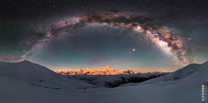 大雪山北部,海拔5884米的雅拉雪山與貢嘎遙相呼應(yīng),日落時(shí)分聳立在原野之上的雅拉被霞光籠罩如同大地的王冠;沙魯里山縱貫甘孜西部,它南北長(zhǎng)約450公里,寬約200公里是四川最寬最長(zhǎng)的山脈,它山勢(shì)平緩,置身其中有時(shí)都感覺(jué)不到山的存在,但同時(shí),它高大巍峨,盛產(chǎn)超過(guò)6000米的獨(dú)立山峰,沙魯里山脈北段有海拔6168米的雀兒山,它的中段有海拔6174米的格聶山,它的南段有三座6000米級(jí)山峰組成的稻城三座雪山,彼此距離不過(guò)5-7千米,三山合圍之中給人強(qiáng)烈的視覺(jué)震撼和心靈沖擊。動(dòng)輒直抵云霄的海拔,加上相對(duì)原始的環(huán)境,使得這里空氣潔凈度極高、光污染小,夜幕落下、銀河升起,云端之色變成一片攝人心魄的星光。
