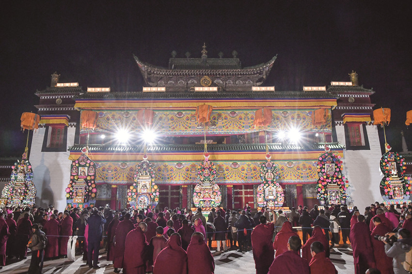 農(nóng)歷正月十五,在甘肅省甘南藏族自治州夏河縣,被譽為“世界藏學(xué)府”的拉卜楞寺舉行一年一度的酥油花燈展,僧人們制作的精美酥油花作品吸引了眾多僧俗群眾和海內(nèi)外游客前來觀看。