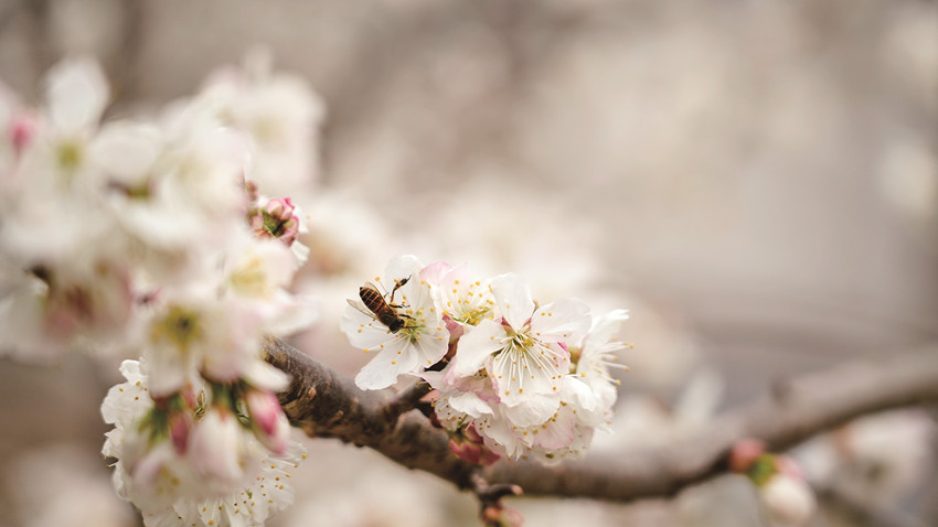 在冷磧鎮(zhèn)杵坭村,一場新雨過后,空氣中混雜著泥土與櫻桃花的芬芳,花朵們正迎春綻放,一簇簇、一串串,密密匝匝地綴滿枝頭,散發(fā)出沁人心脾的花香,蜜蜂飛舞在櫻桃花樹間,為一個(gè)月之后的豐收而忙碌。沿著觀光大道,綿延數(shù)公里的櫻桃花吸引了不少游客前來游玩打卡。
