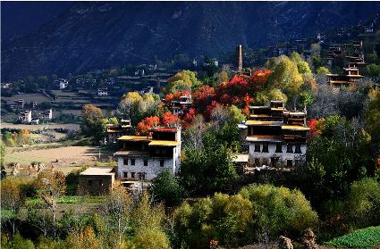 丹巴的秋似乎來(lái)得更晚一些,當(dāng)羌塘高原上的雪花從彤云密布的天空中飄灑下來(lái),雅礱江上游滴水已成冰的時(shí)候,那秋才帶著陣陣涼意,伴隨著飄飄蕩蕩的白云,跨過(guò)雪域高原,翻過(guò)崇山峻嶺,載著五顏六色的夢(mèng)想,悄悄的眷顧上這塊還郁郁蔥蔥的峽谷。就這樣,秋在不經(jīng)意間劃過(guò)峽谷兩岸,用自己特有的方式,渲染了所有的景色,漸漸瘦弱了山的肌膚。
