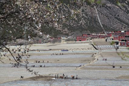 四月的康南大地,處處花紅柳綠、綠意盎然。在巴塘縣,一棟棟紅色的藏房掩映在青山綠水間,勤勞的人們正在忙著播種,一壟壟覆蓋著薄膜的土地,成了這個季節(jié)最美的畫卷。在得榮縣因都壩,田野被染成了讓人心醉的黃色,葡萄又吐出了新綠。一場春雪悄然而至,將太陽谷的大山變成了白色。在鄉(xiāng)城,大地已經開始變得熾熱起來,遠處的白藏房成了陽光下的最美風景。