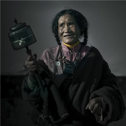 每當(dāng)我手持相機(jī)時(shí),對他們始終懷有一種敬畏,我捕捉到他們眼神里流露出虔誠??粗?jīng)筒上“甲多”的飛轉(zhuǎn),我陶醉了,醉在那轉(zhuǎn)經(jīng)筒的旋轉(zhuǎn)舞動(dòng),醉在那轉(zhuǎn)經(jīng)筒傳誦的故事,醉在那一張張手持轉(zhuǎn)經(jīng)筒的面孔,還有,還有因祈禱音符助推而從未停止的轉(zhuǎn)經(jīng)筒……