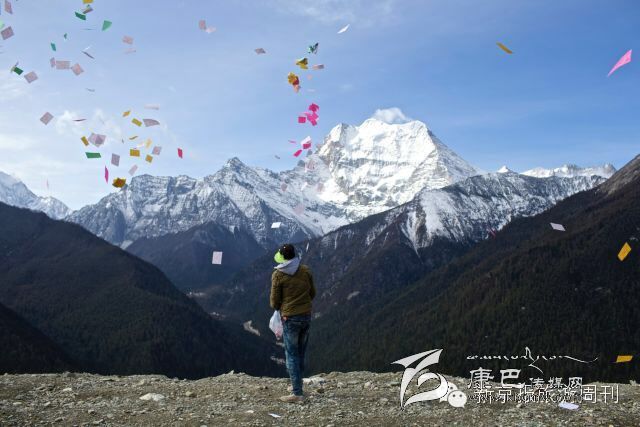 在車上,他很沉默,但當(dāng)車??吭趤喍〈蹇诘挠^景臺前時,他下了車,從懷里掏出一大疊小紙片,揚手撒出,神色虔誠。