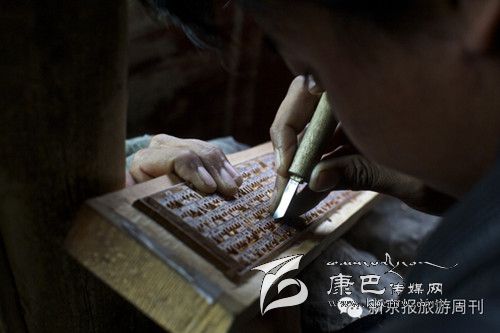 白玉縣,白玉寺,農牧民正在雕刻大藏經(jīng)印版。