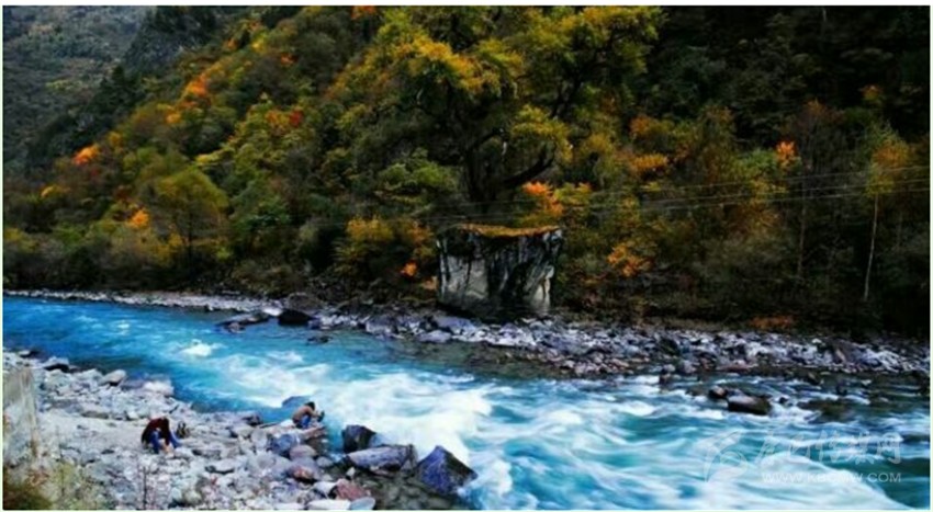 東谷河原名牦牛河,在丹巴縣五個(gè)主干水系中,它是最小的一條,兩岸多為峽谷地貌,僅在支溝匯合處出現(xiàn)有平壩草地。在陡峭高聳的河谷兩岸,針闊葉混交林呈現(xiàn)出深淺不同的綠色,既有青黛,墨綠,又有嫩綠,草青及四季輪番開花的不同品種的大小杜鵑。還不時(shí)有珍禽出沒。每當(dāng)秋高氣爽的季節(jié),一團(tuán)團(tuán),一簇簇的紅葉伴隨杜鵑花在林間綻放,伴以宛轉(zhuǎn)的啾啾鳥嗚;河水清澈明亮,時(shí)而奔騰而下,形成飛瀑,時(shí)而伴著叮咚之聲潺潺而過,這種美景何處能有?老革命家胡耀邦同志游覽后,對(duì)此青山綠水贊不絕口,并稱之為“天然盆景”!盆景藝術(shù)一向以“無聲的詩(shī)詞,立體的畫卷”來形容。牦牛谷景點(diǎn)正是一個(gè)有著巨大篇幅的詩(shī)詞,一個(gè)有著廣闊的立體畫卷。