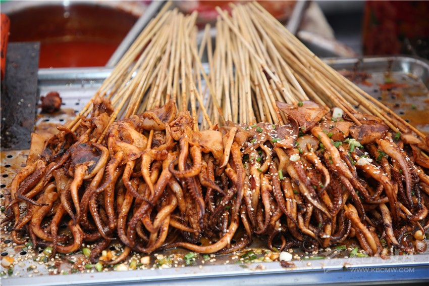 作為一個(gè)四川人,對(duì)于麻辣味的食物毫無(wú)抵抗力,在康定后街林立的商鋪中,記者一眼就相中了“深海魷魚(yú)花”這家店??粗褐t油的魷魚(yú)花靜靜地躺在紅椒和芹菜間,記者咽了咽口水,向老板買(mǎi)了一份兒?!罢媸羌兗兊拇ㄎ秲簺](méi)錯(cuò)了,又麻又辣的?!庇浾邔?duì)老板說(shuō)。老板回答到:“魷魚(yú)花最講究的就是刀法了,要切得好看。雖然在顧客看來(lái)都差不多樣子,但是我每次都要經(jīng)過(guò)細(xì)細(xì)斟酌再一刀一刀的切,爭(zhēng)取多弄幾種樣式,現(xiàn)在我的??蛡円矔?huì)細(xì)細(xì)地考究我切的魷魚(yú)花了。以前我只賣(mài)烤魷魚(yú),只是在家里偶爾會(huì)給我兒子做魷魚(yú)花,后來(lái)看我兒子喜歡吃,才開(kāi)始慢慢地賣(mài)魷魚(yú)花,沒(méi)想到還是很受歡迎。這次美食節(jié),我發(fā)現(xiàn)沒(méi)有人做魷魚(yú)花,所以我就帶著我兒子喜歡的魷魚(yú)花來(lái)參加這次美食節(jié)了。”老板笑著跟記者說(shuō)。