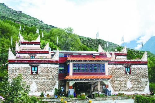 記者在“安卡兒民族莊園”看到,每天游客絡(luò)繹不絕,游客們不肯錯過的是這里的鄉(xiāng)愁。眼前的“安卡兒民族莊園”是一座藏式三層小樓,以嘉絨民居為主格調(diào)。從外觀看,這棟三層小樓與村里其他農(nóng)家小院沒有多少差異,但仔細端詳,其所有窗戶大小、高低不一,透出與眾不同的設(shè)計風(fēng)格。走進院內(nèi),這座藏式小樓的走廊外側(cè)裝著木欄桿,欄桿下面掛著藍綠相間的布條,以及大院中央郁郁蒼蒼的盆景,讓人美不勝收。