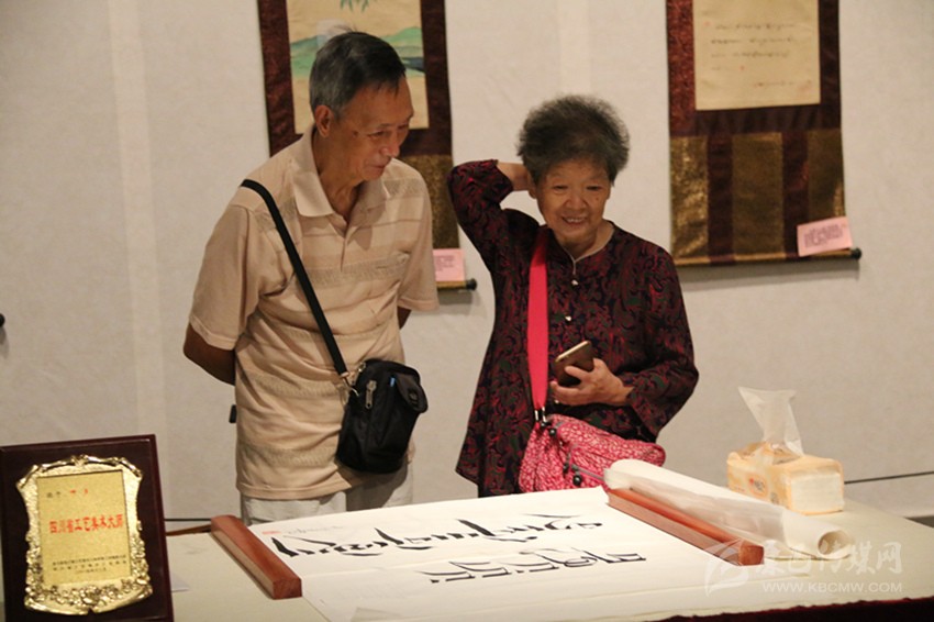 挑選書寫用紙、設(shè)計(jì)藏文布局。四川省工藝美術(shù)大師呷多也是忙碌不停。“展覽越辦越好、越辦越有特色了。”這是他多次參加我州文化展覽后的親身感受,他直言本次展覽又是一次向前的踏步。