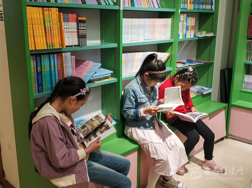 小朋友們?cè)谥菪氯A書店內(nèi)認(rèn)真閱讀。