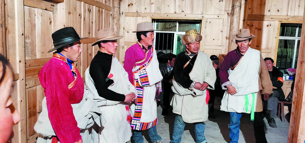夜臨了,月低垂,整條山谷陷入了藍色的世界,近處是墨綠,遠處是淡綠,雄渾的大山在綠的撫摸下也變得婀娜起來;古老寨子的火塘也燃起來了,勞作了一天的普米人聚在一起,跳起了原始氏族人群圍火而舞的傳統(tǒng)舞蹈,曲調(diào)悠揚且古樸動人。