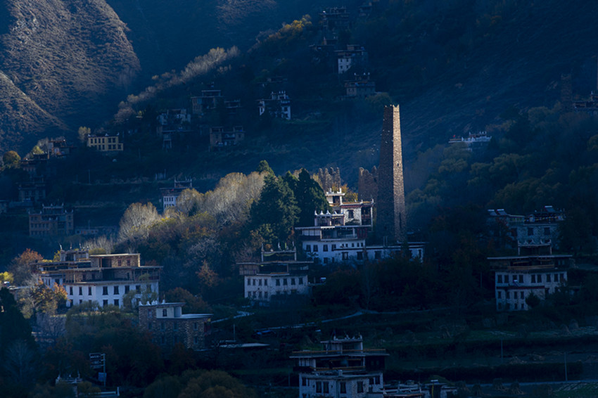 如果說衣著艷麗、高挑健美、輪廓分明、深情嫵媚的丹巴美女,實現(xiàn)了所有女孩子心中的浪漫的公主夢,少女心,是丹巴浪漫唯美氣息代表的話。那么筆直挺拔、棱角分明、飽經(jīng)風(fēng)雨、巍然屹立的碉樓,則是丹巴陽剛之美的代表。