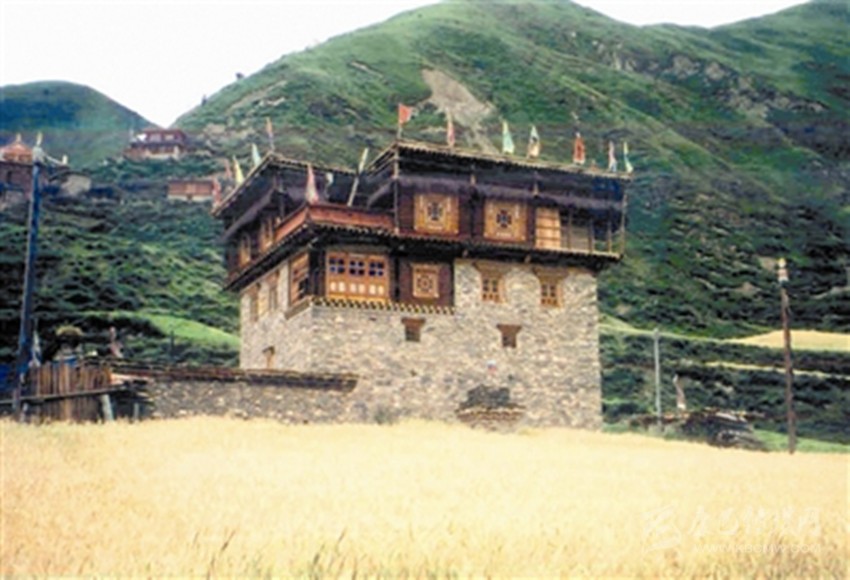 色達縣色爾壩地區(qū)相傳是格薩爾王的大將上嶺八部首領——色爾哇·尼崩達雅的領地,色爾壩因此得名。將軍后裔為紀念自己的祖先,巧妙地利用當?shù)亟ú模ǔ梢淮贝笨崴朴⑿坌蜗蟮牟胤?,構成了國?/span>317線一道亮麗的風景。