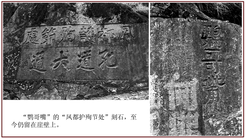 “鸚哥嘴”和“鳳都護(hù)殉節(jié)處”,有如下幾行題款:“大清三十一歲鐵嶺趙爾豐滇南馬維祺率文武委員敬識(shí)於越錢(qián)錫寶”。