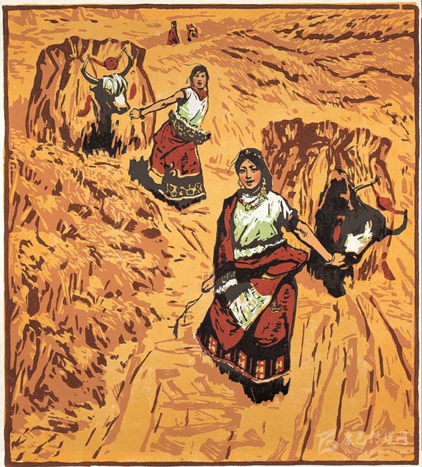 版畫家李煥民曾說:“在水乳交融的生活中,藏族人民以樸實、友好、慈愛,哺育了一代代美術(shù)工作者。”與40年代進藏的前輩大師所不同的是,這批新中國的畫家進藏后不再以畫者的角度來欣賞西藏,而是與藏民同吃、同住、同勞動,深刻地體會藏民的生活和精神世界。他們走進西藏,就是一次次以平等、學(xué)習、尊敬的態(tài)度和藏族同胞一起生活、一起唱歌跳舞,所以他們對西藏人民的感情充滿真摯。當然,這也是一個漫長且辛苦的過程。但正是這個艱辛過程,使得他們的作品更加真實和接地氣,他們把民族精神、民族團結(jié)、積極向上的時代魂魄留在他們的作品里,也成為他們藝術(shù)生涯的經(jīng)典之作。