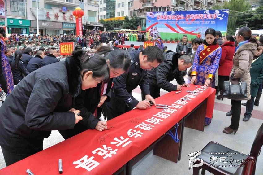 州人大常委會副主任李致民宣布創(chuàng)建全國民族團結(jié)進步示范州“萬人簽名”活動正式開始后,州領(lǐng)導(dǎo)汪洋、李致民、楊國元、范文華、蔣秀英、楊學(xué)康以及甘孜軍分區(qū)、駐州武警部隊領(lǐng)導(dǎo)同州級機關(guān)、志愿者、個體工商戶、學(xué)生、駐軍、政法干警、康定縣黨政機關(guān)干部代表近千人,陸續(xù)到“萬人簽名”條幅上簽下了自己的姓名。