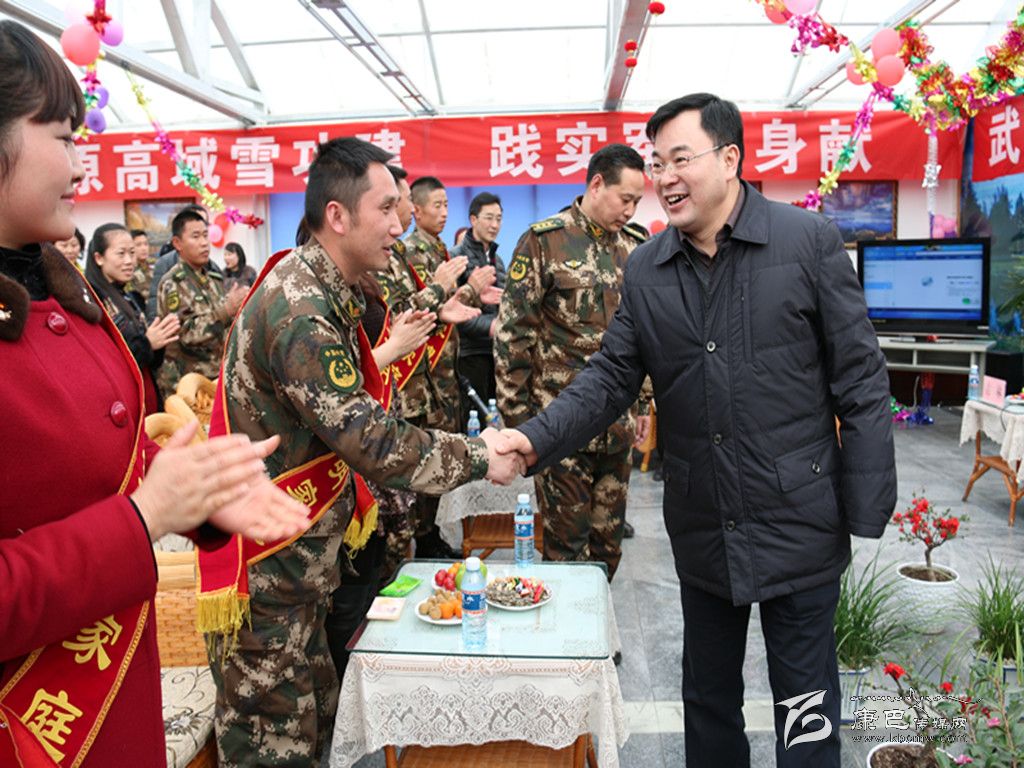 本網(wǎng)訊(記者 張濤 文/圖) 大年初二(2月20日)下午,州委書記胡昌升專程來到武警二支隊(duì)與各位軍人家屬歡聚一堂,共度新春佳節(jié)。代表州委、州政府和百萬甘孜兒女,對(duì)來康定過年的35名軍嫂表示熱烈歡迎,對(duì)各位軍嫂為甘孜發(fā)展穩(wěn)定和民生所做出的無私奉獻(xiàn)表示衷心感謝,向全州廣大軍屬致以崇高敬意!