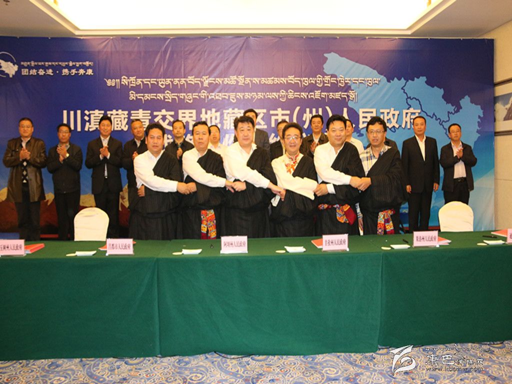 隨著川滇藏青交界地藏區(qū)市(州)長聯(lián)席會議制度的建立,交界地藏區(qū)的合作由過去“點(diǎn)對點(diǎn)”的雙邊合作上升為“抱成團(tuán)”的多邊合作。圖為簽約儀式現(xiàn)場。