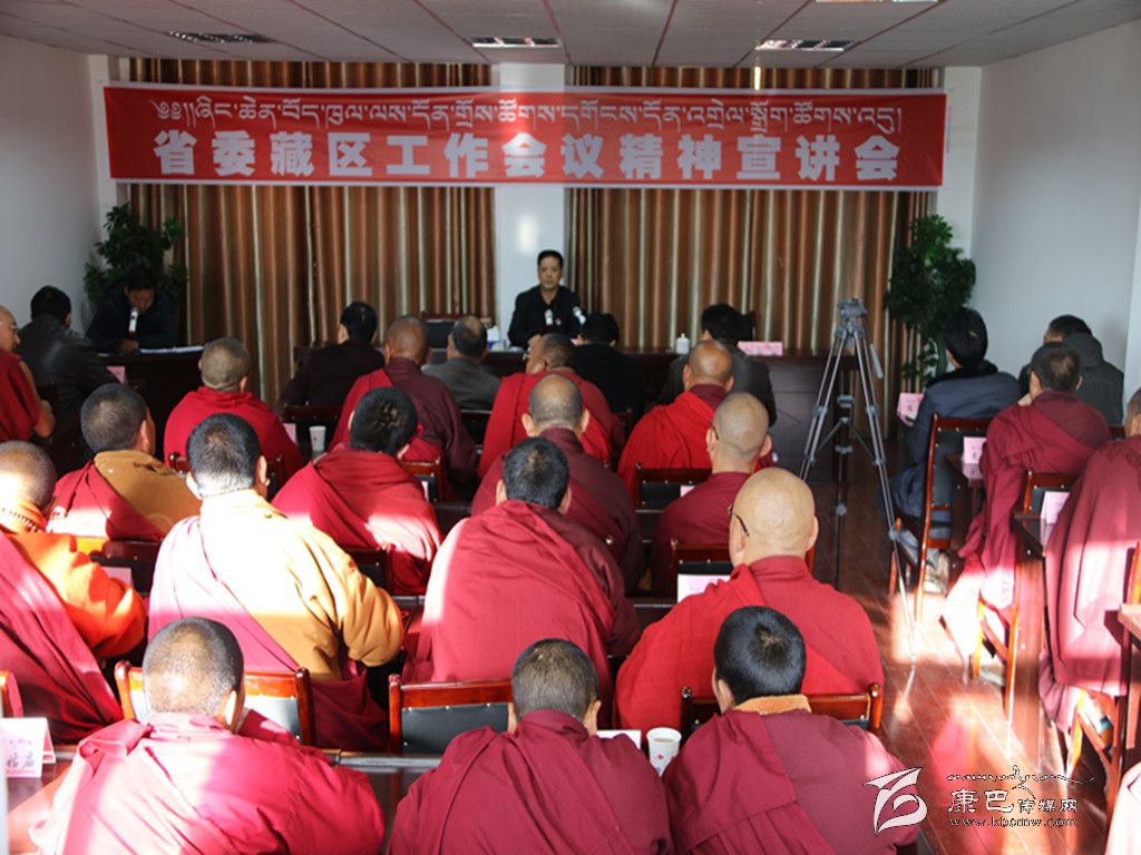 劉成鳴從深刻認(rèn)識省委對四川藏區(qū)戰(zhàn)略地位和形勢的判斷,深刻認(rèn)識省委關(guān)于藏區(qū)工作的總體要求、總體目標(biāo)、重要原則、重大舉措以及省委和東明書記對甘孜藏區(qū)的關(guān)心關(guān)懷,深刻認(rèn)識省委關(guān)于努力引導(dǎo)藏傳佛教與社會主義社會相適應(yīng)的部署要求等七個方面,進(jìn)行了詳細(xì)宣傳講解。