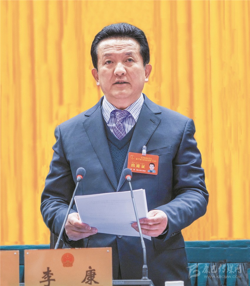 肖友才作政府工作報(bào)告。(本網(wǎng)記者 王明陽(yáng) 張兵 攝)