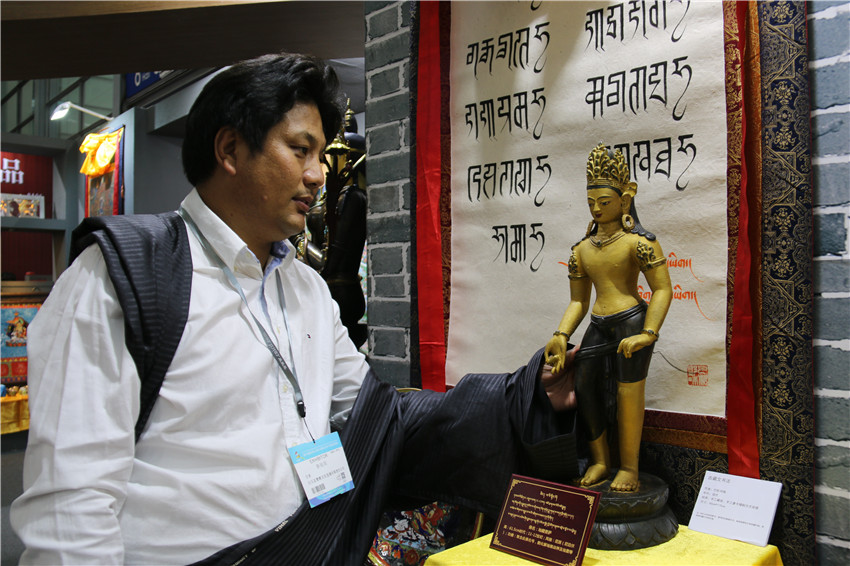 “三天來,市民了解工藝品的多,購買的不是很多,但也有采購意向協(xié)議的?!比斩鄬τ浾哒f,作為獨具特色的藏族非物質(zhì)文化遺產(chǎn),為搶救這一特殊工藝技術(shù),我們公司在州委、州政府和縣委、縣政府以及州縣兩級文化部門的關(guān)心支持下,從2000年開始恢復(fù)董察花色青銅的加工工藝,開發(fā)了上百種精神文化類產(chǎn)品、生活使用類產(chǎn)品、美飾擺設(shè)類產(chǎn)品以及演奏樂器類產(chǎn)品。