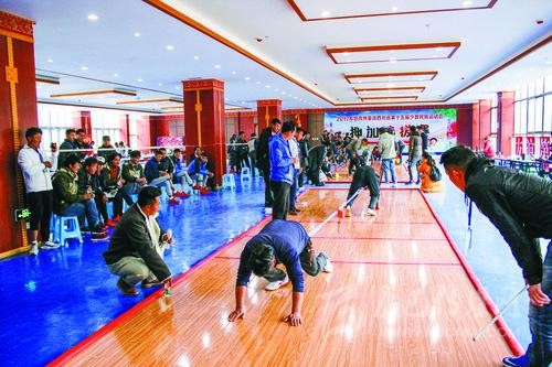 今年,我州將由115名運動員、教練員等組成11支運動隊,參與賽事設(shè)置的8個競賽項目和2個表演項目,其中有兩支隊伍將參與綜合類表演項目比賽。我州總參賽人數(shù)相比上一屆略有減少。我州參加綜合類表演項目比賽的節(jié)目是《瑪亞切通》和《炯動》?!冬攣喦型ā纷g為孔雀吃水,主要體現(xiàn)力量和平衡的動作;《炯動》取材于藏民族農(nóng)村修建房屋時的勞動場面,以青年男女在勞動過程中載歌載舞對歌或比拼勞動成果、質(zhì)量、進(jìn)度為內(nèi)容,主要比拼身體的力量和靈活度。我州參加競技類表演項目比賽的節(jié)目是《嘎久》?!陡戮谩芬鉃榉嗰R鞍或吉祥翻越,是藏族人民節(jié)日聚會時的一種競技體育活動,主要比拼靈活性、趣味性和技巧性。