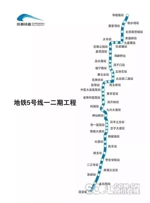 北起新都區(qū)香城大道南側(cè)華桂路站,向南止于回龍站。線(xiàn)路全長(zhǎng)49.02公里,共設(shè)車(chē)站41座,其中地下站36座,高架站5座。