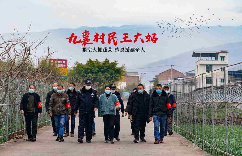 2月19日,在漢源縣九襄鎮(zhèn)木林村村民王清霞的蔬菜大棚內(nèi),她請(qǐng)來(lái)鄰居、村干部、社區(qū)民警,幫助她收割捐給湖北鄂州市的蔬菜。