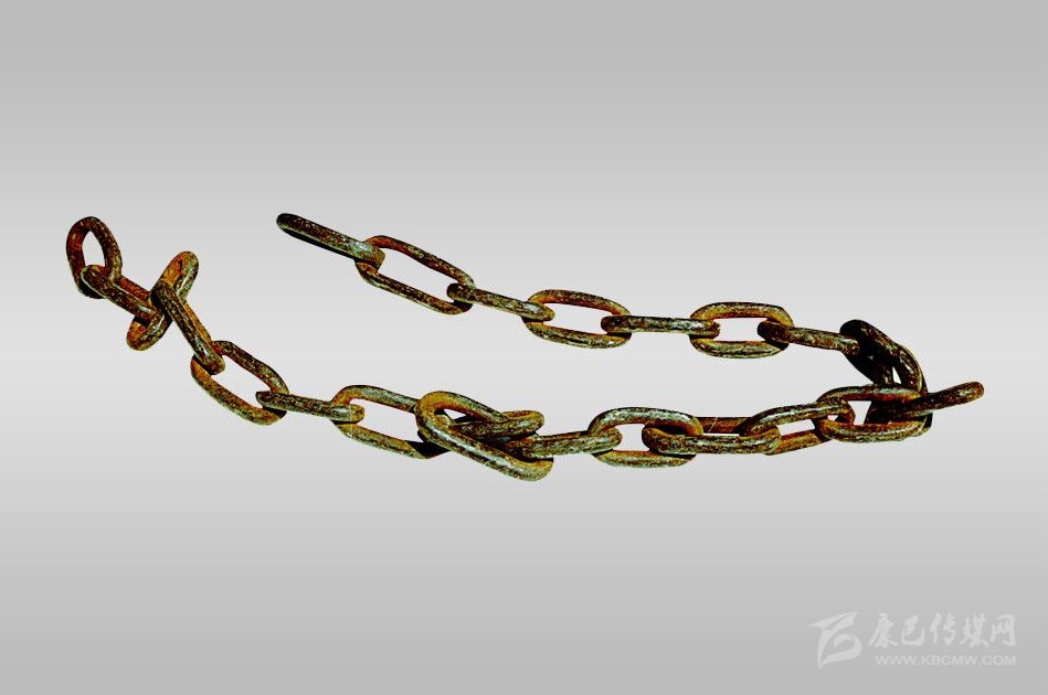 當(dāng)時瀘定橋上的鐵索鏈實物。
