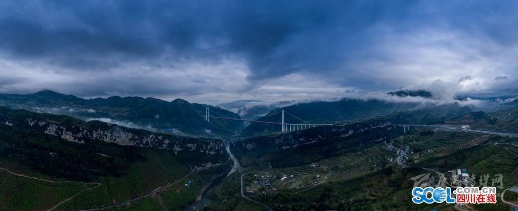 4月11日,雨后的瀘州市古藺縣的赤水河紅軍大橋在云霧中,大橋橫跨赤水河兩岸,連接川黔兩地,在連綿的烏蒙山中更加壯觀。赤水河大橋主橋跨徑1200米,為雙塔單跨鋼桁梁懸索橋,索塔采用門形框架鋼筋混凝土結(jié)構(gòu),貴州岸塔高243.5米,是世界山區(qū)峽谷同類型橋梁中第一高塔,同時也是國內(nèi)山區(qū)峽谷同類型橋梁第二跨度的鋼桁梁懸索橋。作為四川南向出川大通道,增強了川南、黔北、渝西等地的經(jīng)濟聯(lián)系。