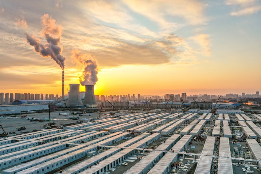 這是3月20日傍晚拍攝的吉林市高新南區(qū)隔離方艙建設(shè)現(xiàn)場(chǎng)。 新華社 發(fā)