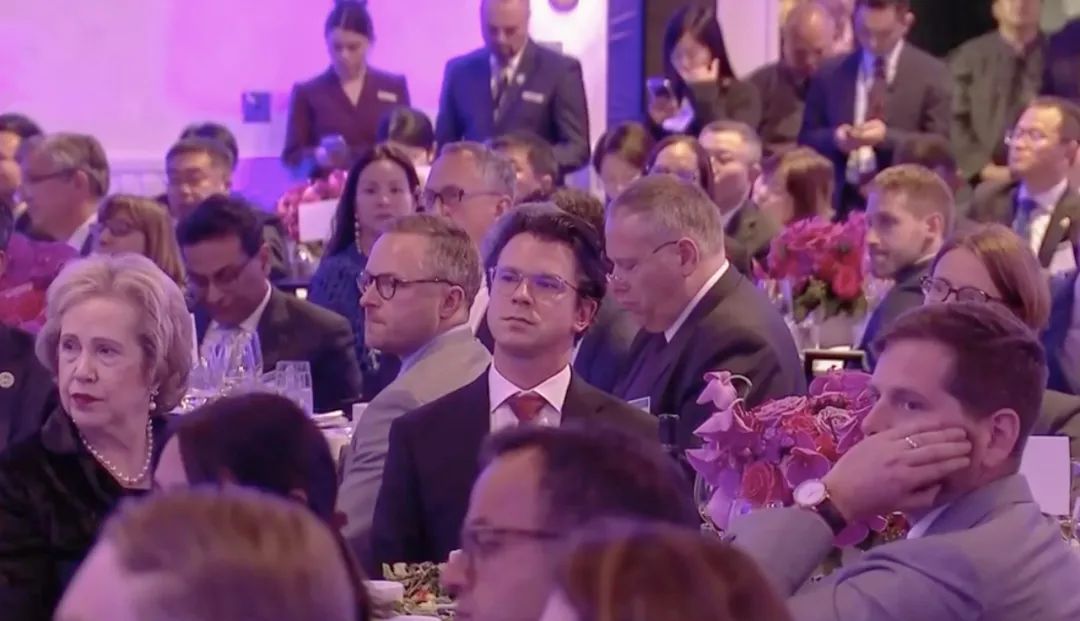 △當?shù)貢r間11月15日晚,習(xí)近平主席在美國友好團體聯(lián)合歡迎宴會上發(fā)表演講。圖為參加宴會的人士認真聆聽演講。