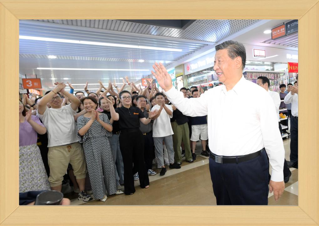 12月31日晚,國家主席習近平發(fā)表二〇二四年新年賀詞。 推近、定格、銘記,透過總書記身后書架上的一張張照片,我們記住過去,也對未來充滿信心。 不變的情懷 幾張老照片,在書架上擺放多年,人們已經非常熟悉。 習近平同志青年時期的軍裝照,連續(xù)第3年出現,擺放在書架醒目位置。 這令人不由得想起10年前的一段暖心對話—— 2013年11月,湖南十八洞村,村民石拔三老人見到了來此考察的習近平總書記。 “怎么稱呼您?”“我是人民的勤務員?!?/p> 歲月流轉,初心不改。從照片上的青年,到人民的勤務員,“我將無我,不負人民”的赤子情懷始終如一。 家庭是個人溫馨的港灣。習近平同志一家三口和父親習仲勛在一起、習近平同志在福州時帶女兒玩的照片,自總書記第一次發(fā)表新年賀詞以來,就一直擺在書架上。 2023年,又有幾張新的總書記家庭照片映入眼簾。 一張是習仲勛同志的單人照。 2023年是習仲勛同志誕辰110周年。習近平總書記從小深受父親影響,形容父親“像一頭老黃牛,為中國人民默默地耕耘著”,“這也激勵著我將自己的畢生精力投入到為人民群眾服務的事業(yè)中,報效養(yǎng)育我的錦繡中華和父老鄉(xiāng)親”。 同夫人彭麗媛在深圳錦繡中華景區(qū)的留影、習近平夫婦懷抱女兒的合影,也是第一次出現在書架上。 天下之本在家。習近平總書記指出,家庭和睦則社會安定,家庭幸福則社會祥和,家庭文明則社會文明。 修身、齊家,家好、國更好。習近平總書記率先垂范,對家人的責任、對家風的傳承、對家教的認真令人動容。 不停的步履 11張2023年拍攝的照片,留下習近平總書記過去一年治國理政的經典瞬間。 2023年,習近平總書記共進行了16次國內考察,出訪4次,在國內數十次會晤到訪的各國各界人士。 將鏡頭拉遠,總書記的身影不辭萬里—— 向南,習近平總書記來到位于我國大陸最南端的廣東省湛江市徐聞縣;向北,考察中國最北端的黑龍江省漠河市北極村;向西,視頻連線守衛(wèi)祖國西大門的新疆軍區(qū)紅其拉甫邊防連執(zhí)勤哨所。 這張同紅其拉甫邊防連執(zhí)勤哨所等進行視頻通話的拼版照片,正是書架上的新照片之一。 “黃河九曲、長江奔流,總讓人心潮澎湃、豪情滿懷?!?023年,長江流經的11個省市里,習近平總書記考察了4個;黃河沿線的9個省區(qū)里,考察了5個;大運河涉及的8個省市里,考察了5個。 北瀕長江、南臨廬山、東枕鄱湖,江西九江的中國石化九江分公司位置特殊。10月,習近平總書記來到這里時,員工們圍攏過來紛紛向總書記問好。 總書記親切地說,希望你們按照黨中央對新型工業(yè)化的部署要求,堅持綠色、智能方向,扎扎實實、奮發(fā)進取,為保障國家能源安全、推動石化工業(yè)高質量發(fā)展作出新貢獻。 “追求卓越 勇創(chuàng)一流”——墻上的標語仿佛大家的回應。這一幕,也被相機定格。 將鏡頭推近,總書記的關切無微不至—— 這是對生產的關心。 萬畝甘蔗林中,習近平總書記同身著民族服裝的蔗農走在一起,大家的笑容像甘蔗一樣甜??倳洝盀楸U蠂姨菢I(yè)安全、促進蔗農增收致富發(fā)揮更大作用”的叮嚀深入人心。 古老荔枝樹下,總書記同現場技術人員親切交流,指出要著力做好“土特產”文章,以產業(yè)振興促進鄉(xiāng)村全面振興。 這是對企業(yè)的關注。 9月,習近平總書記來到浙江義烏國際商貿城考察,人們紛紛從商鋪中走出來,掌聲、問候聲、歡呼聲此起彼伏。 面對商戶、小企業(yè)主們,總書記點贊道:“義烏小商品闖出了大市場、做成了大產業(yè),走到這一步很了不起,每個人都是參與者、建設者、貢獻者。” 這是對人民的關懷。 2023年,華北、黃淮等地出現極端降雨,引發(fā)洪澇和地質災害。 北方入冬之際,習近平總書記來到北京、河北受災較重的相關地區(qū),看望慰問受災群眾。書架上這張照片,便是總書記在北京門頭溝妙峰山鎮(zhèn)水峪嘴村考察時留下的。 一度被洪水淹沒的水峪嘴村已經修葺一新,村民家中窗明幾凈、暖氣充足。 少年兒童的成長,習近平總書記一直牽掛在心,書架上多次出現總書記同孩子們在一起的場景。 2023年精選的,是一張習近平總書記在北京育英學校的照片。 看到孩子們正在學生農場勞動,總書記關心地說:“希望同學們從‘學農’中感受到農作的艱辛和農民的不易,從小養(yǎng)成熱愛勞動、珍愛糧食、尊重自然的良好習慣,為建設美麗中國作貢獻?!?/p> 不竭的力量 國徽高懸,熠熠生輝。這是一個歷史性的瞬間。 2023年3月10日,北京人民大會堂。全票當選國家主席、中央軍委主席的習近平,左手撫按《中華人民共和國憲法》,右手舉拳,面向近3000名全國人大代表,鄭重宣誓。 錚錚誓言,響徹人民大會堂,回蕩在960萬平方公里土地上,回蕩在億萬中華兒女心中。 重溫激動人心的一刻,我們信心十足、精神百倍。 信心,來自堅強的領導核心—— 書架上,擺放著習近平總書記在內蒙古自治區(qū)巴彥淖爾市臨河區(qū)國營新華林場考察時的一張照片。 走進正在治理的沙地,總書記感慨:“ 像‘三北’防護林體系建設這樣的重大生態(tài)工程,只有在中國共產黨領導下才能干成。三北地區(qū)生態(tài)非常脆弱,防沙治沙是一個長期的歷史任務,我們必須持續(xù)抓好這項工作,對得起我們的祖先和后代?!?/p> 言辭懇切。一個對于時間的理解“以百年、