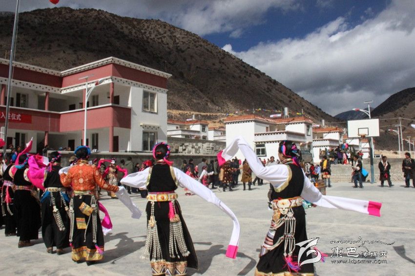 絨貢村距離茨巫鄉(xiāng)政府16公里,地處高山地帶,是得榮縣典型的高山邊遠貧困村,農(nóng)牧民居住條件艱苦,交通不便,農(nóng)作物只生一季。2010年,為改善藏區(qū)群眾生產(chǎn)生活條件,省委、省政府實施牧民定居計劃,經(jīng)過多次調研后,平均海拔2800米,地勢平坦的卡色壩被確定為得榮縣生態(tài)移民開發(fā)安置點之一。作為推進富民安康的一項重大民生工程,卡色壩移民新村建設既結合了牧民生活習慣又融入了現(xiàn)代居住理念,建筑風格統(tǒng)一的藏式房屋內設有衛(wèi)生間、洗浴室、并配套太陽能熱水器,經(jīng)過6年的建設,在今日迎來了正式喬遷入住。