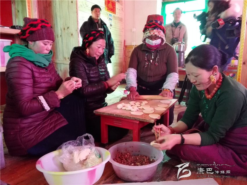 走進江巴達吉的家里,一股熱浪撲面而來,小鋼爐上燒著熱水,幾個女人正在備料準備包酥油包子和牛肉餃子。藏桌上擺滿了糖果、牛肉,豐盛的食物琳瑯滿目。江巴達吉愜意地喝著奶子茶,知足和幸福寫在臉上。