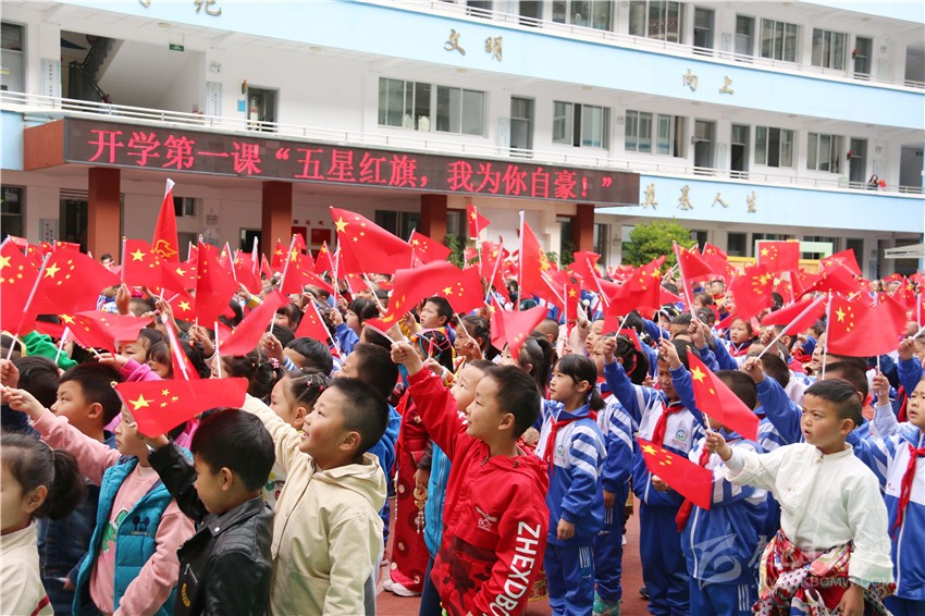 開學(xué)典禮結(jié)束后,各年級開學(xué)第一課“五星紅旗,我為你自豪”陸續(xù)進(jìn)行。