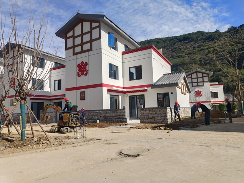 11月5日,記者走進(jìn)瀘定縣德威鎮(zhèn)奎武村“9·5”瀘定地震災(zāi)后重建集中安置點,只見一幢幢繪有“如意結(jié)”和穿斗裝飾等瀘定傳統(tǒng)建筑元素以及“瀘定紅”“紅飄帶”等民族特色的安置房沿大渡河畔依次排開,一條條寬敞平整的水泥硬化道路將這些風(fēng)貌一致、戶型合理、結(jié)構(gòu)安全的安置房屋串聯(lián)起來。幾十名工人正在安置點內(nèi)忙碌,有的在鋪設(shè)路面、有的在栽種綠化樹、有的在搬運廢渣……,拿到鑰匙的部分村民正在進(jìn)行室內(nèi)裝修,現(xiàn)場一派繁忙景象。