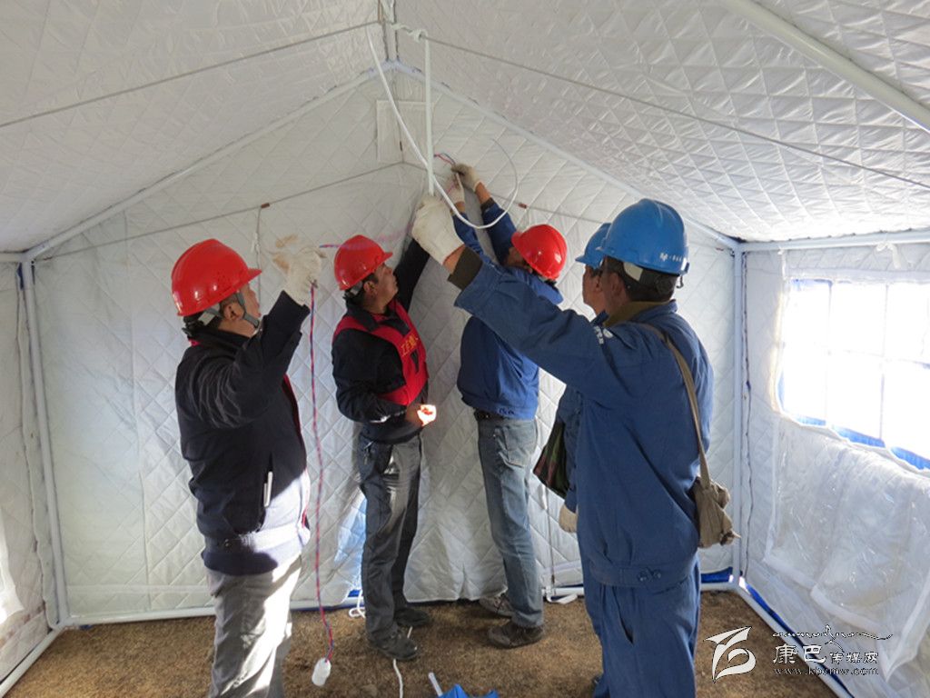 奪拉二村有4個(gè)變壓器臺(tái)區(qū),其中2個(gè)臺(tái)區(qū)為人員較多的木雅祖慶學(xué)校,地震使學(xué)校住宿樓變?yōu)槲7?,全校?000名學(xué)生轉(zhuǎn)移至學(xué)校空地上的安置點(diǎn)。為了讓安置點(diǎn)內(nèi)的受災(zāi)師生和應(yīng)急指揮中心盡快用上電,黨員突擊搶險(xiǎn)小分隊(duì)不僅要在安置點(diǎn)迅速安裝應(yīng)急照明設(shè)施,同時(shí)還要從圍墻和學(xué)校食堂的樓頂上重新布放近3段2公里長(zhǎng)的臨時(shí)電源線。學(xué)校圍墻因地震而搖搖欲墜,稍微用點(diǎn)力,墻、磚塊或水泥就會(huì)掉下來(lái),面臨這一難題,公司黨總支沉著應(yīng)對(duì),迅速組織塔公供電所與新都橋供電所的黨員干部趕往震中,同時(shí)安排其余供電所的黨員干部迅速增援。先期到達(dá)的救援人員在余震不斷發(fā)生的情況下,對(duì)受損供電設(shè)備及線路進(jìn)行了緊急處理;在后期人員趕到后,公司黨總支迅速研究制定工作方案,科學(xué)分工:第一組黨員突擊搶險(xiǎn)隊(duì)負(fù)責(zé)隱患排查,第二組黨員突擊搶險(xiǎn)隊(duì)負(fù)責(zé)電線布放,第三組黨員突擊搶險(xiǎn)隊(duì)負(fù)責(zé)救災(zāi)帳篷的照明安裝。在三個(gè)小組隊(duì)員的共同努力下,用近三個(gè)小時(shí)的時(shí)間就解決了應(yīng)急指揮中心、醫(yī)療隊(duì)和臨時(shí)安置點(diǎn)的照明安裝這一難題。