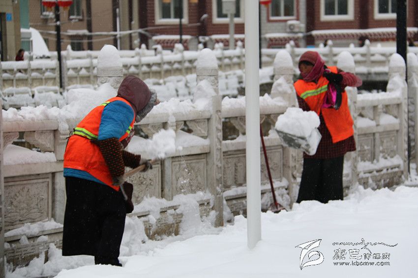 州公安局共產(chǎn)黨突擊隊(duì)正在東大街除雪。