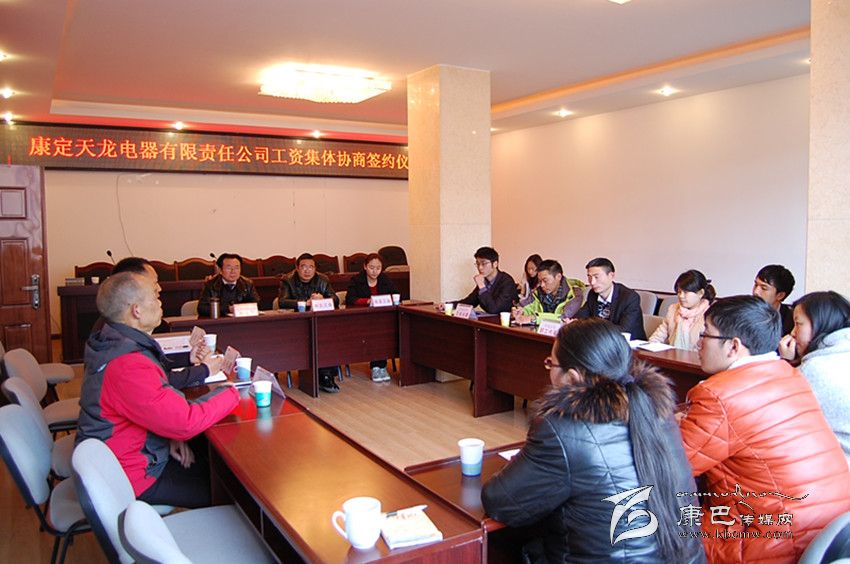 在州總工會(huì)、州人社局、州工商聯(lián)的指導(dǎo)下,由康定市個(gè)私協(xié)會(huì)牽頭,組織天龍電器有限責(zé)任公司工會(huì)、公司法人、職工代表等開(kāi)展企業(yè)工資集體協(xié)商簽約儀式??刀ㄊ袀€(gè)私協(xié)會(huì)主席何清泉介紹說(shuō):“企業(yè)工資集體協(xié)商辦法,可以有效促進(jìn)勞動(dòng)關(guān)系和諧穩(wěn)定,只有使企業(yè)員工明白‘鍋里有了,碗里才有’的道理,合理提高員工待遇,才能調(diào)動(dòng)企業(yè)員工的工作積極性。”康定市天龍電器有限責(zé)任公司總經(jīng)理萬(wàn)勝才也表示,以前員工的工資標(biāo)準(zhǔn)都由企業(yè)老板定,老板說(shuō)了算,員工只能服從,但員工的積極性沒(méi)有真正被調(diào)動(dòng)起來(lái),企業(yè)留不住人才,企業(yè)的效益受到了嚴(yán)重影響。他說(shuō):“員工才是企業(yè)的原動(dòng)力和生命力,工資集體協(xié)商的好處是可以把員工的利益和企業(yè)的利益捆綁在一起,充分發(fā)揮員工的主觀能動(dòng)性,極大地調(diào)動(dòng)員工的工作積極性。下一步公司將盡可能使員工本土化,加強(qiáng)業(yè)務(wù)培訓(xùn),不斷提高員工福利待遇,關(guān)愛(ài)和幫扶困難員工。”