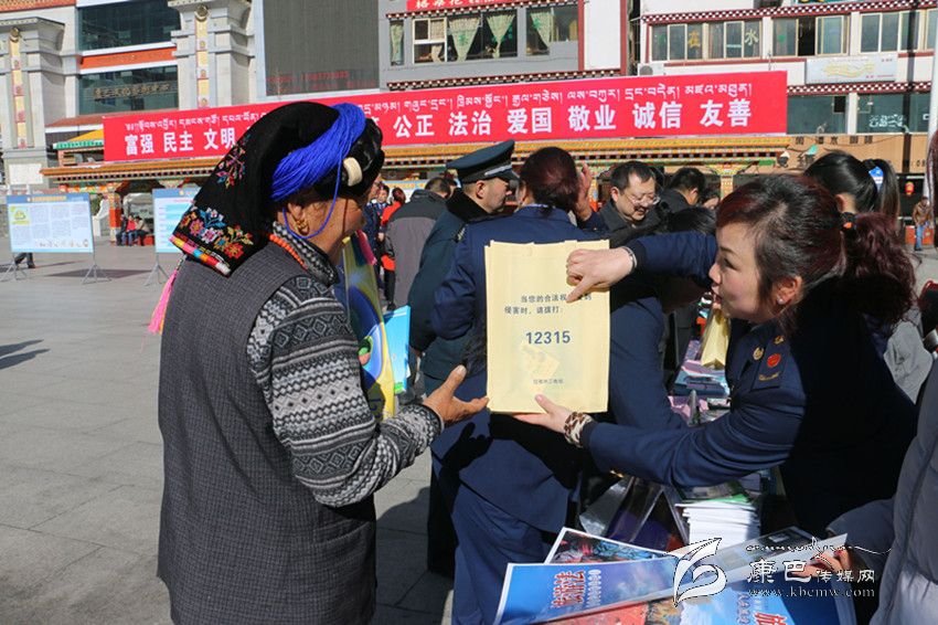 活動現(xiàn)場,中石油公司職工開展了“中石油加油站點質(zhì)量、計量服務誠信經(jīng)營承諾”活動。州工商局的工作人員現(xiàn)場為市民講解新《中華人民共和國消費者權(quán)益保護法》的亮點是什么、怎樣維權(quán)等知識。州煙草公司、康定市食品藥品工商質(zhì)監(jiān)局在廣場上設立了假冒偽劣商品展示區(qū),通過現(xiàn)場講解讓消費者提高辨假識劣的能力。圖為宣傳活動現(xiàn)場工商部門工作人員現(xiàn)場為市民講解。
