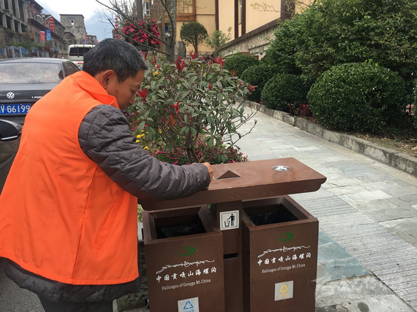 “現(xiàn)在海螺溝管理局的干部職工自己不亂扔垃圾,發(fā)現(xiàn)垃圾還會主動清理,你說我們還好意思亂扔垃圾,還好意思在店外亂擺攤嗎?”海螺溝一餐館的老板告訴記者:“我是海螺溝本地人,可以說是見證了海螺溝的變化。以前的海螺溝又臟又亂,到處都是垃圾,大風一吹,空中飄的就是塑料袋、紙片和沙塵,管理局的干部來宣傳衛(wèi)生時沒有人聽,大家都是我行我素。現(xiàn)在海螺溝進行了風貌改造,街道變干凈了,干部又帶頭搞衛(wèi)生,他們來宣傳和管理時我們還有什么說的?!?/span>