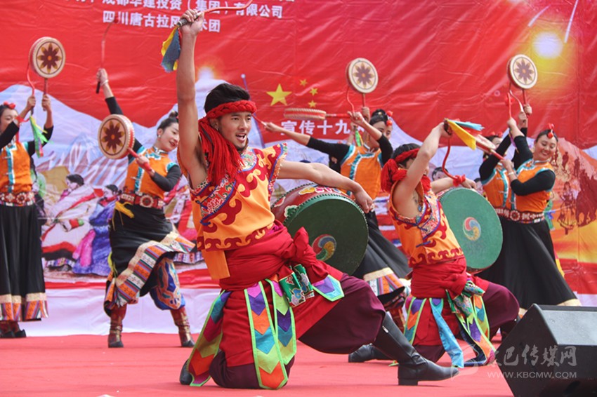 當天上午,縣民族廣場歡聲雷動,擠滿了前來觀看的群眾?!叭藗兌颊f人世間最美的色彩是東方紅,最偉大的政黨是中國共產(chǎn)黨”,上午10點整,由該縣老年協(xié)會帶來的舞蹈《東方紅》拉開了文藝演出的序幕。隨后,一曲《吉祥的鍋莊》、一首首歡快的歌曲以及《太極劍》表演和由金雪蓮、金索瑪?shù)任璧戈爭淼摹跺伹f》《蘇木地偉》等民族舞蹈,將演出推向了高潮。