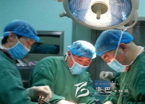 文家勇主任(中)、蔣強(qiáng)副主任(左)在陳哲宇副院長(zhǎng)(右)指導(dǎo)下為病人實(shí)施手術(shù)