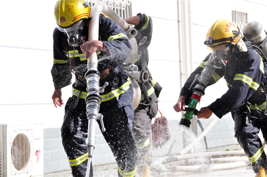 “快點、快點、再快一點。”上午9時,爐城南路消防救援站消防員們身著15公斤戰(zhàn)斗服,帶著高壓水槍水帶,托著60公斤的人體模型,拼命奔跑,中隊長李勇不停地為隊員鼓勁?!皶r間就是生命,我們平時的訓(xùn)練就是在和時間賽跑,和死神賽跑。”李勇告訴記者,消防員對于體能要求極高,不僅要跑得快,還要負重跑?!拔覀儸F(xiàn)在的訓(xùn)練就是模擬火災(zāi)現(xiàn)場,消防員在滅火的同時,還要救出被困群眾。這樣的訓(xùn)練每天都會進行,只有平時多流汗,戰(zhàn)時才少流血?!崩钣抡f。