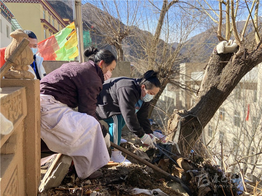 本網(wǎng)訊 3月14日,得榮縣翁甲寺僧侶開展了“周末衛(wèi)生大掃除”活動(dòng),對(duì)寺院公共場所、僧舍等進(jìn)行清掃。