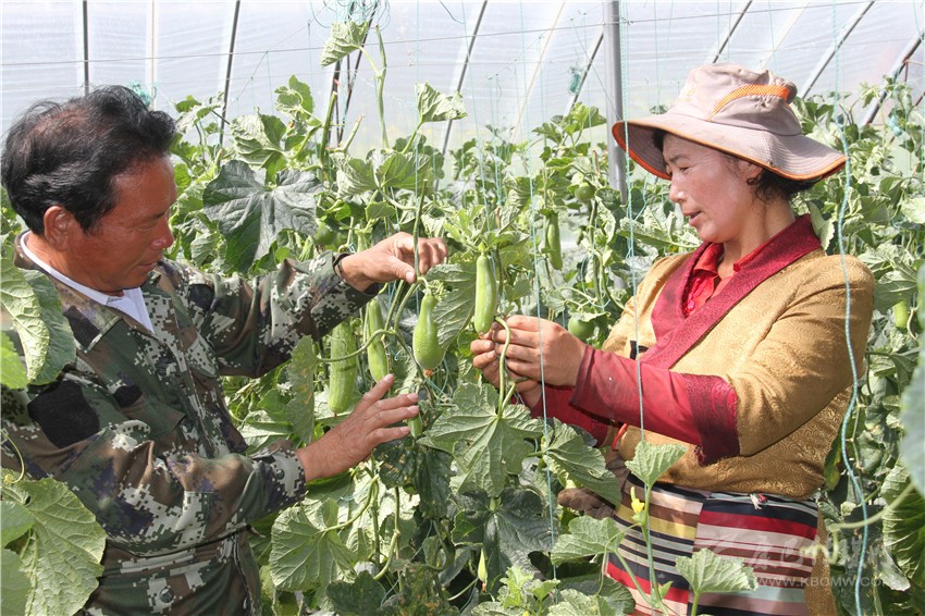 理塘縣甲洼鎮(zhèn)俄曲村貧困藏族農(nóng)戶跟技術(shù)員學(xué)習(xí)蔬菜種植技術(shù)。 本網(wǎng)資料庫圖