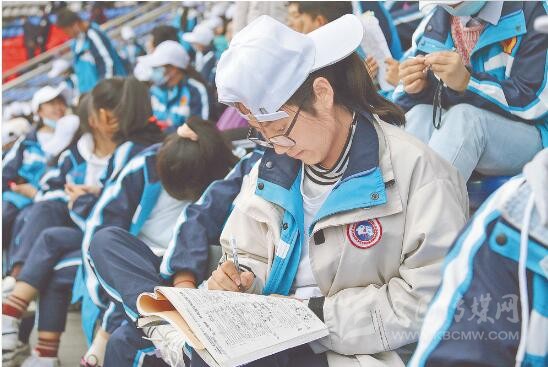 早上7點(diǎn)30分左右,記者來(lái)到這片特殊的學(xué)生方陣時(shí)發(fā)現(xiàn),不少學(xué)生把課本帶去了現(xiàn)場(chǎng),正趁著候場(chǎng)間隙埋頭苦讀。據(jù)康定中學(xué)老師李虓偉介紹,同學(xué)們是排練隊(duì)伍中進(jìn)場(chǎng)時(shí)間最晚、排練時(shí)間最短的一個(gè)團(tuán)隊(duì),“在不耽誤課程的情況下,孩子們將所有能抽出來(lái)的時(shí)間全部奉獻(xiàn)給這次演出了,所以每次排演總是格外地認(rèn)真,絲毫沒有怨言,為了節(jié)約時(shí)間,同學(xué)們還利用訓(xùn)練期間短暫的休息時(shí)間,埋頭溫習(xí)課本、做作業(yè)。”
