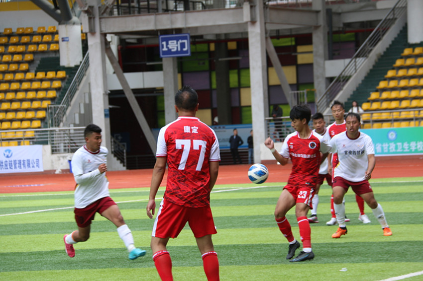 下半場比賽開始,甘孜隊通過長傳和球員之間的跑位,取得了一些進攻機會,但是康定隊的后場防守嚴(yán)密,甘孜隊并沒有取得實質(zhì)成果,一場拉鋸戰(zhàn)正在展開。第64分鐘,康定隊選擇換人來保持進攻的火力,比賽繼續(xù)。第75分鐘,甘孜隊在前場多次傳球,10號登真達(dá)吉接到足球后選擇直接打門,一道弧線劃過康定隊的半場,足球應(yīng)聲入網(wǎng),平分的僵局被打破,比分變成了甘孜隊1:0康定隊。